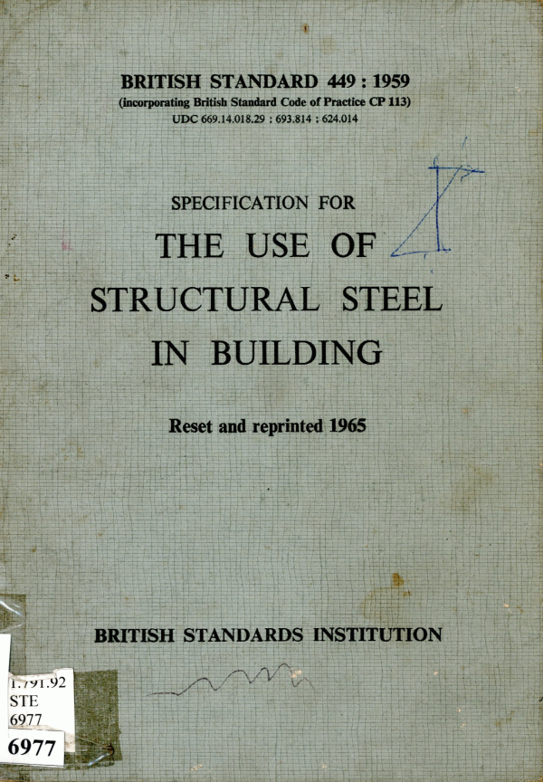 Specification for structural steel in building Reset and reprinted 1965