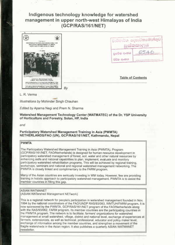 Indigenous technology knowledge for watershed management in upper north-west Himalayas of India (GCP/RAS/161/NET)