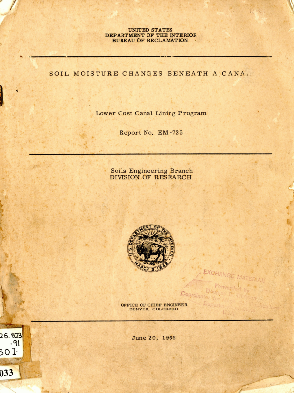 SOIL MOISTURE CHANGES BENEATH A CANAL Lower Cost Canal Lining Program