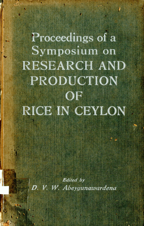 Proceedings of a Symposium on Research and Production of Rice in Ceylon