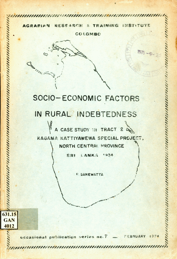 By: Material type: TextTextLanguage: English Publication details: Agrarian Research & Training Institute Sri Lanka 1974Description: 23pSubject(s):