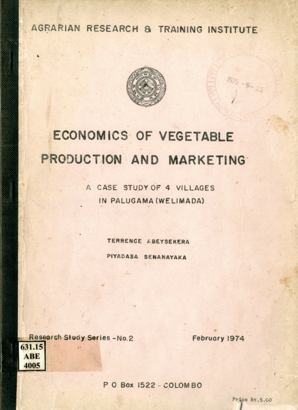 Economics of Vegetable Production and Marketing
