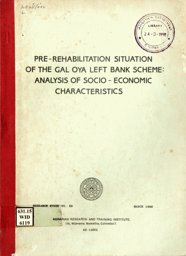 Pre-rehabilitation situation of the Gal Oya Left Bank Scheme: Analysis of socio-economic characteristics