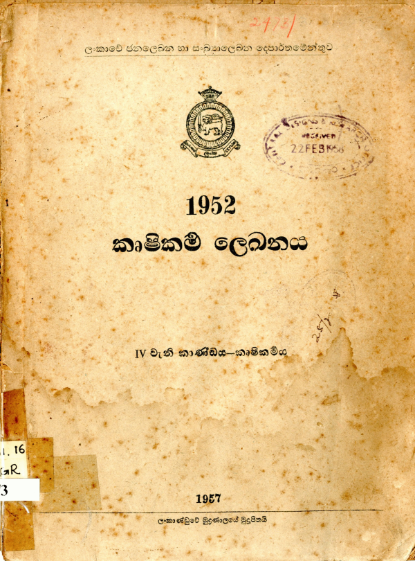1952, කෘෂිකර්ම ලේඛනය