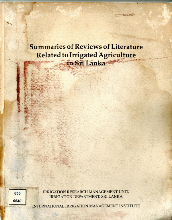 Summaries of Reviews of Literature Related to Irrigated Agriculture in Sri Lanka