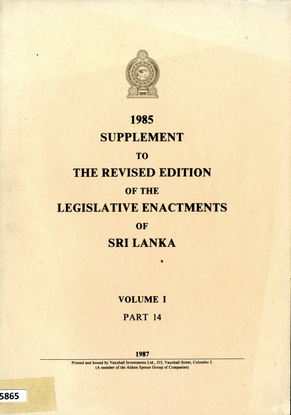 1985 Supplement to The Revised Edition of the Legislative Enactments of Sri Lanka Volume I
