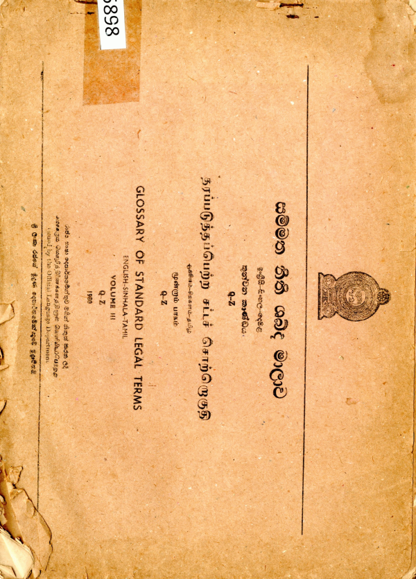 සම්මත නීති ශබ්ද මාලාව ඉංග්රීසි - සිංහල - දෙමළ