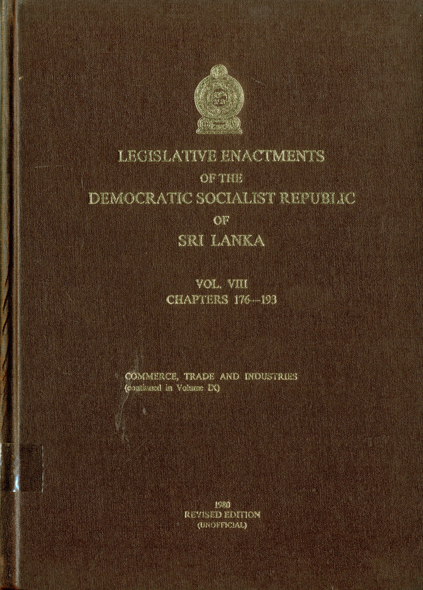 Legislative Enactments of the Democratic Socialist Republic of Sri Lanka. Commerce, Trade and Industries (chapters 176-193)