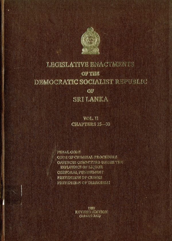 Legislative Enactments of the Democratic Socialist Republic of Sri Lanka. Criminal Law and Procedure. Excise, Police and Prisons (chapters 31-67)