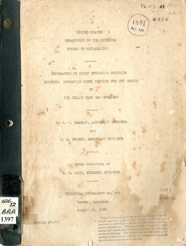 Hydraulic model studies for the design of the Island park dam spillway