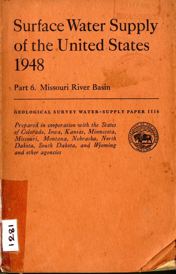 Surface water supply of the united states 1948 Part 6. Missouri river basin