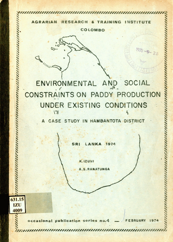 Environmental and Social Constraints on Paddy Production Under Existing Conditions
