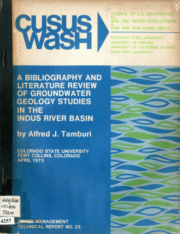 A Bibliography and Literature Review Of Groundwater Geology Studies In The Indus River Basin