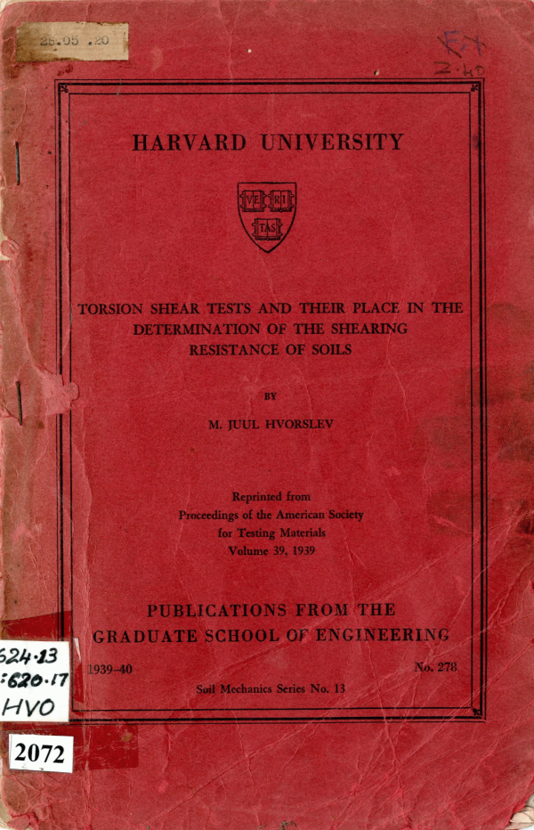 Torsion shear tests and their place in the determination of the shearing resistance of soils by Series: Soil Mechanics Series No ; 13