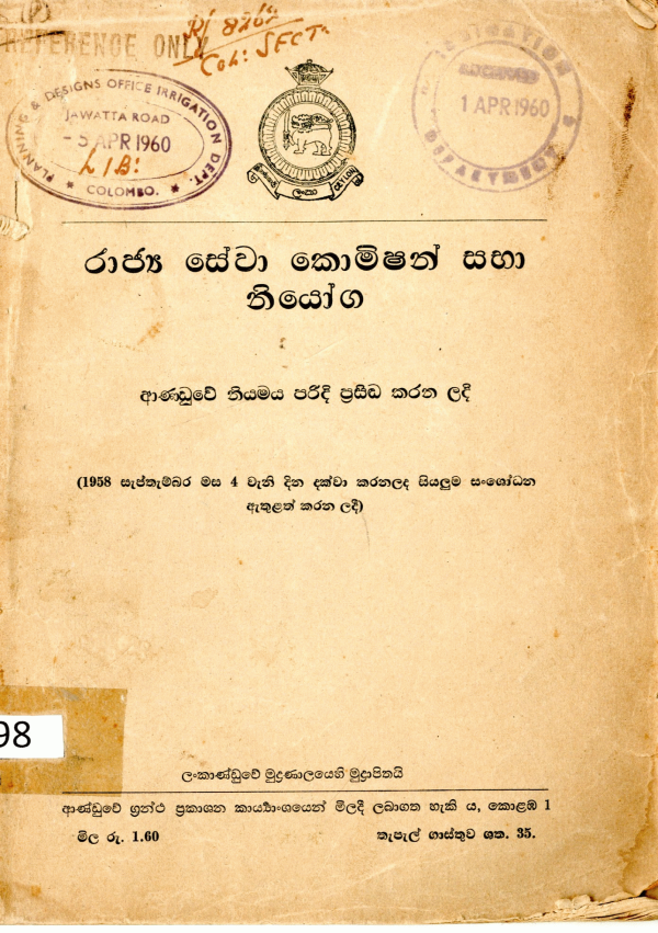 Publication details: Government of Sri Lanka Printing Press Sri Lanka 1958