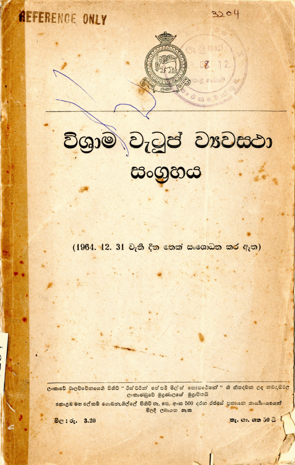 Publication details: Government of Sri Lanka Printing Press Colombo, Sri Lanka 1964