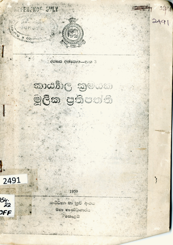 Publication details: Government of Sri Lanka Printing Press Colombo, Sri Lanka 1959